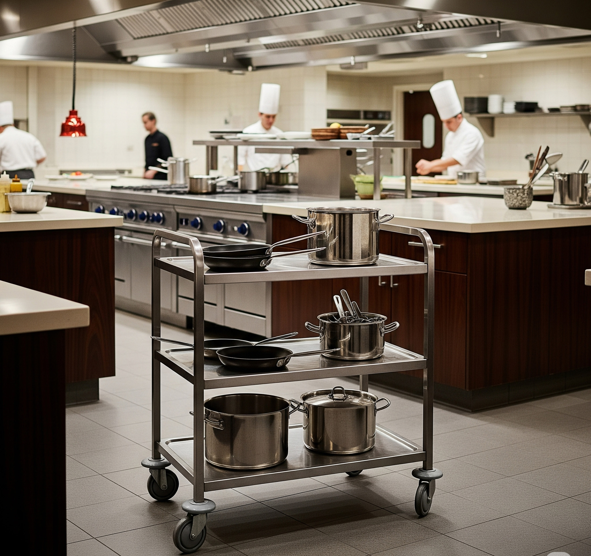ครัวของร้านอาหาร โรงแรม หรือโรงงานอาหาร มักมีการทำงานแข่งกับเวลาและมีของใช้จำนวนมาก หากไม่มีระบบจัดการที่ดี พื้นที่อาจรกและทำงานล่าช้า รถเข็นวางของจึงกลายเป็นผู้ช่วยที่ทำให้ครัวเป็นระเบียบ เคลื่อนย้ายของสะดวก และช่วยเพิ่มความปลอดภัย มาดูกันว่า 5 จุดในครัวที่ควรมีรถเข็นวางของ มีตรงไหนบ้าง