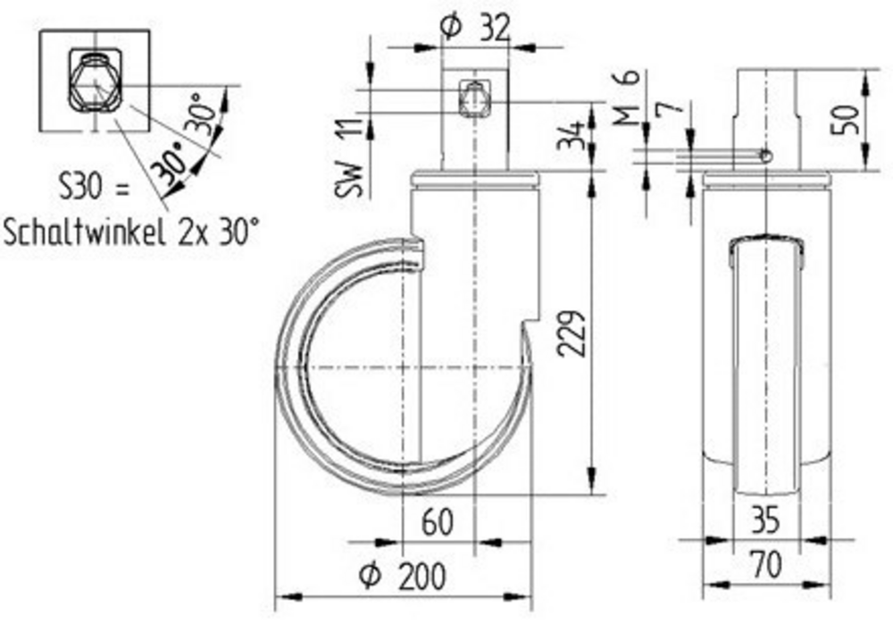 Central locking3ระบบ ลูกล้อ8นิ้วแกน32มม.มีขนาด200มม.รับน้ำหนัก150-450กก.ต่อลูก