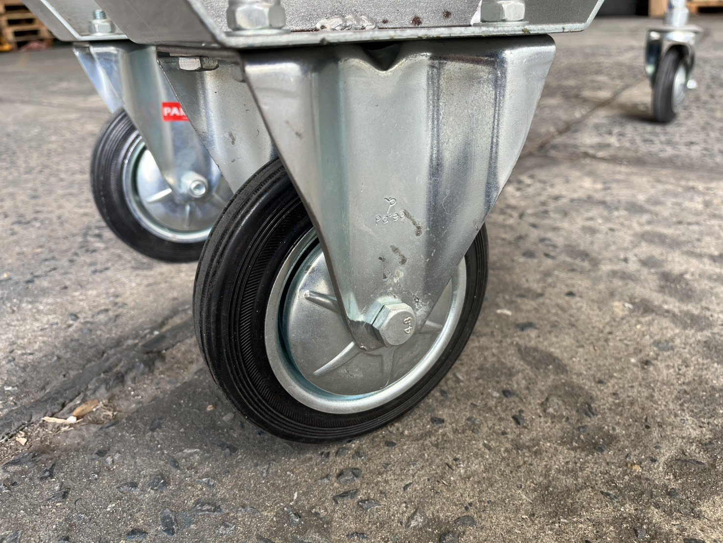 >แข็งแรง ทนทานต่อความชื้นและสนิมด้วย โครงสร้างเหล็กชุบซิงค์ เคลือบแลกเกอร์ สำหรับบรรทุกสินค้าที่รับน้ำหนักมากและมีความสูงเป็นพิเศษ >เบาแรง ลูกล้อขนาดใหญ่ 6"เพิ่มความเบาในการเข็น และรับน้ำหนักได้มาก สูงสุด 500 กก. สามารถติดตั้งลูกล้อที่ขึ้นลงบันไดเลื่อนได้ กรุณาสอบถามเพิ่มเติมกับทางฝ่ายขาย