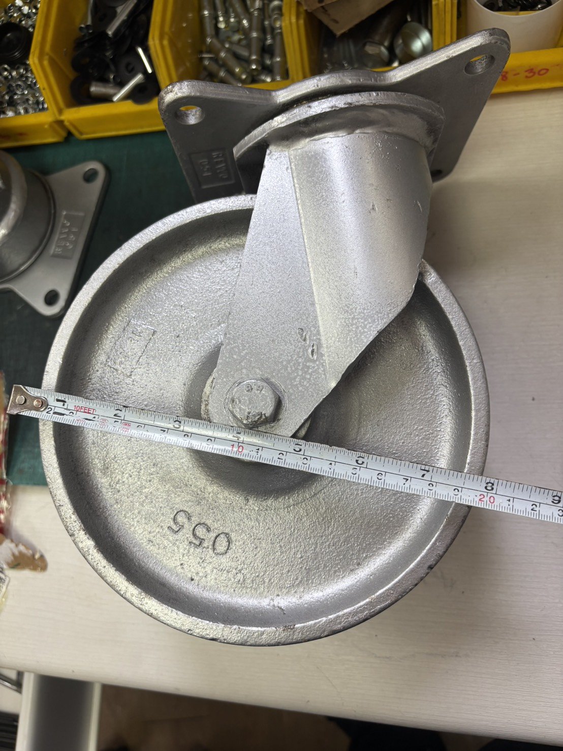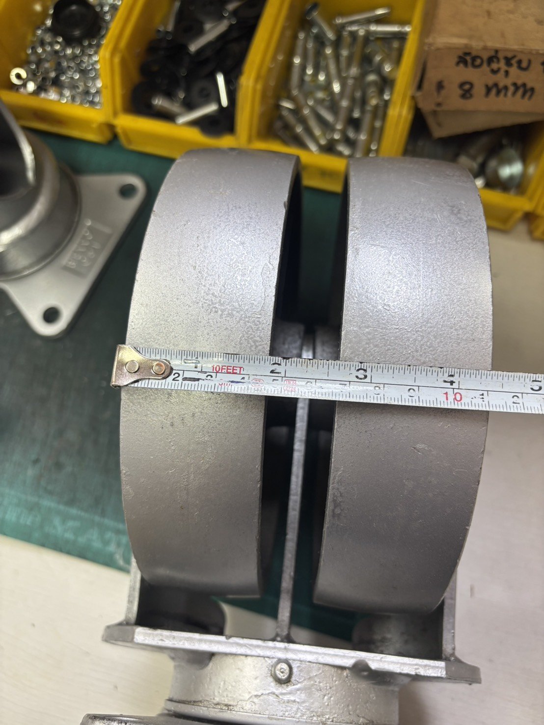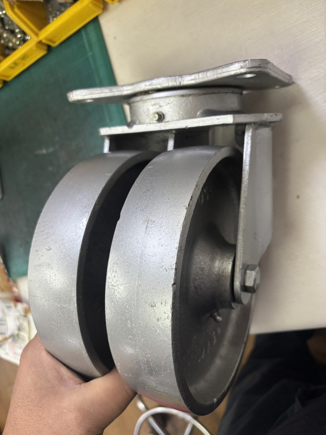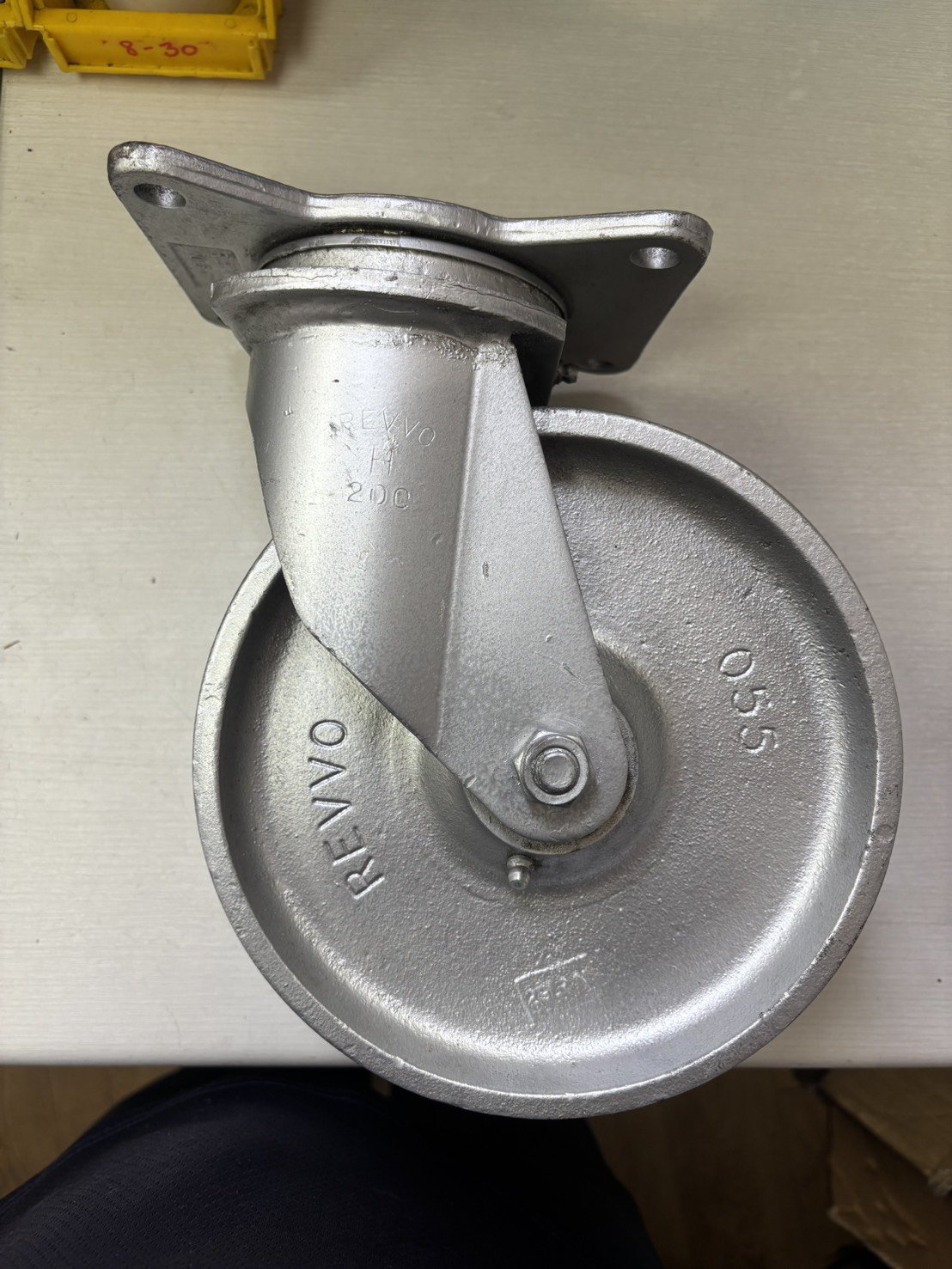 ลูกล้อเหล็ก8นิ้วล้อคู่แป้นหมุน แกนเหล็ก คุณภาพสูง รับน้ำหนัก 370-555 กก. ตรา REVVO